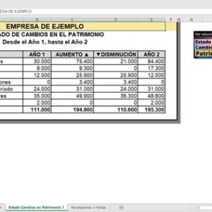 El archivo de Excel contiene el Estado de Cambios en el Patrimonio de una empresa de ejemplo elaborado paso a paso; desde el Libro Diario hasta la obtención final del Estado de Cambios en el Patrimonio con sus correspondientes revelaciones a los estados financieros.
