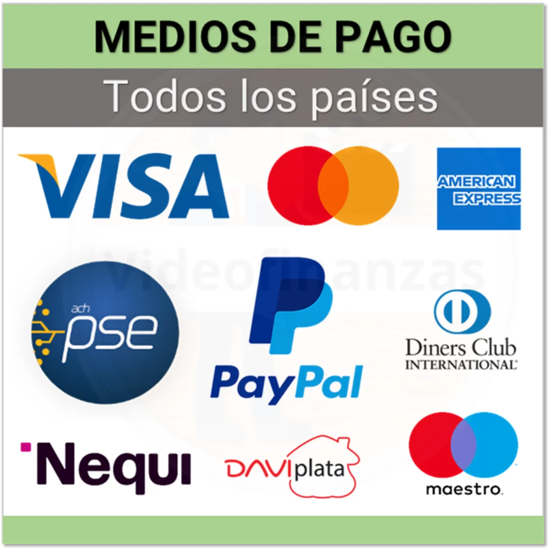 Medios de pago: Tarjetas débito y crédito, Paypal, botón PSE, Visa, Mastercard, American Express, Nequi, Daviplata, Diners Club, Maestro y otros más.
